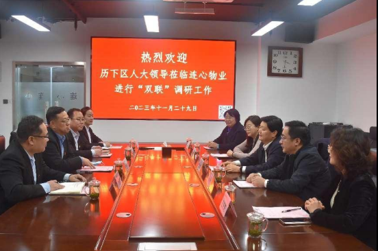 2023年11月29日下午,歷下區(qū)人大副主任杜寶現,千佛山街道黨工委書記張保國,歷下區(qū)人大常委會人聯(lián)處處長于艷文,千佛山街道人大工作室主任朱曉紅,歷下區(qū)人大代表、山東大空間電器有限公司總經理王樂芝,千佛山街道人大工作室秘書陳道千等蒞臨濟南連心物業(yè)有限公司進行“雙聯(lián)”工作調研。歷下區(qū)人大代表、濟南連心物業(yè)有限公司黨支部書記、董事長王宏勇,公司黨支部副書記、總經理孟令乾,工會主席李寶建,辦公室主任孫耀先等參加調研匯報工作。