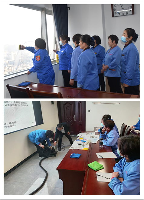 講師馬雪峰首先對家政服務(wù)人員進行家政理論知識培訓。分別從清潔劑分類、清潔藥劑認識、結(jié)晶粉使用、常用清潔工具認識及使用等方面展開,理論結(jié)合實際,細化標準,提高效率,普及清潔藥劑及工具的正確使用方式及安全使用劑量和方法。同時,講師馬雪峰強調(diào)家政服務(wù)人員要牢記公司家政服務(wù)規(guī)范要求,提高家政服務(wù)人員服務(wù)態(tài)度和服務(wù)意識,做到眼里有活,做事干練,努力為客戶提供專業(yè)舒心的家政服務(wù)。