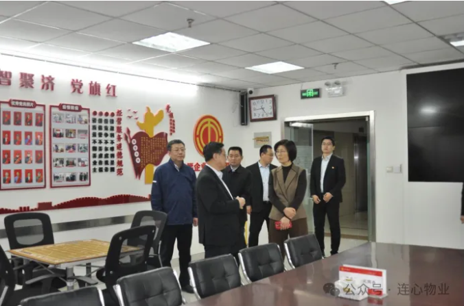 濟(jì)南連心物業(yè)有限公司黨支部書記、董事長(zhǎng)王宏勇陪同濟(jì)南市工商聯(lián)領(lǐng)導(dǎo)參觀了公司總部黨建文化墻、工會(huì)“工事共辦”議事廳、連心職業(yè)培訓(xùn)學(xué)校等。黨建文化墻展示了連心物業(yè)在黨建工作及取得的成績(jī)和榮譽(yù)。工事共辦議事廳則是連心物業(yè)推動(dòng)員工參與決策、促進(jìn)民主管理的重要平臺(tái)。