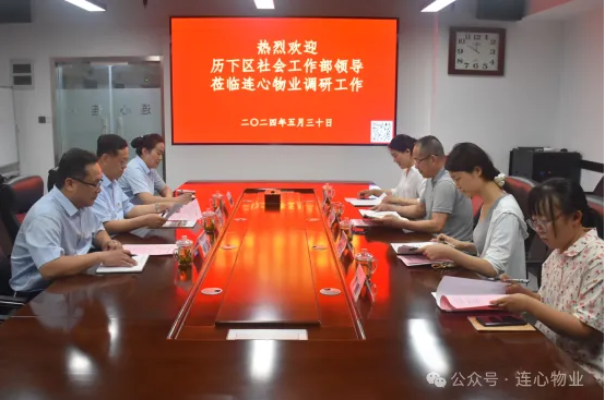 2024年5月30日,歷下區(qū)社會工作部副部長雷國勝,歷下區(qū)社會工作部二級科員翟舒寧,千佛山街道應急管理辦公室副主任姚東東,千佛山街道黨建工作室工作人員高超等蒞臨濟南連心物業(yè)有限公司調(diào)研非公黨建工作。濟南連心物業(yè)有限公司黨支部書記、董事長王宏勇,副總經(jīng)理、工會主席李寶建,黨辦主任孫耀先等參加調(diào)研匯報工作。