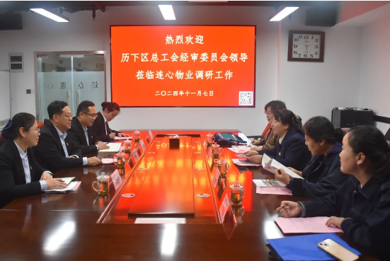 2024年11月7日下午,歷下區(qū)總工會經(jīng)審委主任裴榮、區(qū)總工會經(jīng)審委委員兼歷下區(qū)教育局工會負責人巫玫、區(qū)總工會經(jīng)審委委員兼濟南市甸柳第一小學辦公室主任王麗以及歷下區(qū)總工會社工左明娣等領(lǐng)導蒞臨連心物業(yè)工會進行工作調(diào)研。連心物業(yè)黨支部書記、董事長王宏勇、工會主席李寶建、工會副主席孫耀先、財務經(jīng)理馬曉婷參加調(diào)研匯報工作。