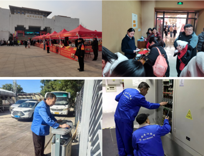 為保障活動順利進行,濟南連心物業(yè)駐山東省文化館項目團隊提前策劃、精心部署,從多個方面為活動保駕護航。提前與活動布展方溝通,根據(jù)活動流程和規(guī)模,精準協(xié)調(diào)場地使用。安全是活動的重中之重。濟南連心物業(yè)在文化館入口、活動廣場等關鍵位置增設了4個巡邏點,嚴格執(zhí)行人員疏散與引導流程。同時,通過監(jiān)控設備和現(xiàn)場巡查相結(jié)合的方式,密切關注人群動態(tài)。確保觀眾有序入場參觀、安全觀看表演和離場。在活動籌備階段,保潔條線對文化館進行了深度清潔?;顒悠陂g,保潔人員在廣場增設4個垃圾桶,每隔30分鐘就對現(xiàn)場進行一次巡查清理,及時處理垃圾,確保場館始終保持干凈整潔,為觀眾提供了一個舒適、衛(wèi)生的參觀環(huán)境。工程條線提前一周對文化館的水電、照明等設施設備進行全面檢查和維護。對發(fā)現(xiàn)的安全隱患和設備故障進行及時修復和更換?;顒赢斕欤こ倘藛T全員待命,隨時準備應對可能出現(xiàn)的突發(fā)情況。