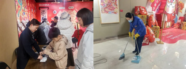 安全保障工作責任重于泰山。秩序維護團隊的成員們深知自己肩負的使命,他們的身影在文化館的各個區(qū)域穿梭不停,巡邏頻次增加,24小時不間斷。每一個展廳、每一間辦公區(qū)以及所有出入口,都被他們細致排查。不放過任何一個安全隱患,不放過任何一個可疑之處。環(huán)境清潔工作同樣不容忽視。春節(jié)期間,我們不僅將清潔頻次調整為每小時一次,還利用節(jié)前一個月的時間對文化館進行深度清潔,確保場館內的每一個角落都煥然一新。我們的保潔手持清潔工具,穿梭于各個展廳之間,用細致入微的清潔工作,為參觀者營造了一個干凈整潔的參觀環(huán)境。工程維修保證設施設備正常運行。在設施維設備護方面,我們提前一周對場館內的各項設施設備進行了全面的檢查和維護,確保其在春節(jié)期間能夠高效、穩(wěn)定地運行。同時,工程維修團隊24小時值班,隨時準備應對可能出現(xiàn)的設施設備意外和例外故障,確保參觀體驗不受影響。客服服務形成靚麗風景。春節(jié)期間,我們特別提前加強客服團隊的服務品質培訓,提升了服務人員的專業(yè)素養(yǎng)和應變能力。無論是面對游客的問詢、講解,還是提供必要的引導和幫助,我們的服務人員都以飽滿的熱情和專業(yè)的態(tài)度,耐心細致地為每一位參觀者提供周到細致的服務。