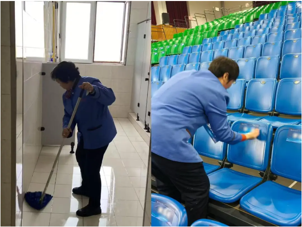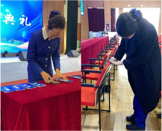 保障環(huán)境整潔,營造活動氛圍。保潔團(tuán)隊提前對禮堂及周邊區(qū)域進(jìn)行全面清潔。地面、座椅、舞臺、走廊等區(qū)域進(jìn)行深度清掃,確保環(huán)境整潔衛(wèi)生。特別是對衛(wèi)生間、垃圾桶等重點區(qū)域進(jìn)行重點消毒,確保參與活動教職工健康安全。