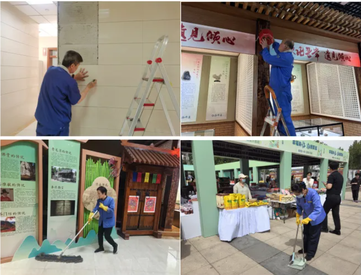 活動期間,濟南連心物業(yè)員工化身“多面手”,在不同崗位書寫責任與擔當。安全保障“零時差”,面對活動期間數(shù)千人的參觀流量,項目積極組織“地毯式”安全檢查,并邀請“經(jīng)文保”對項目《防暴恐應(yīng)急預案》指導。針對非遺市集、臨朐文旅宣傳周等人員流動較大的區(qū)域,制定《大客流應(yīng)急預案》規(guī)劃“雙通道” 引流路線,配置應(yīng)急安保人員24小時輪崗。展覽服務(wù)“零距離”,對群星廣場、聚雅空間、展廳、非遺市集等5大展覽現(xiàn)場,制定“一區(qū)域一方案”,要求保潔每30分鐘進行一次巡檢,按需增設(shè)分類垃圾桶。工程團隊對場館設(shè)施進行“拉網(wǎng)式” 巡檢,實時監(jiān)控展廳設(shè)備設(shè)施,確保非遺精品、書畫佳作以最佳狀態(tài)呈現(xiàn)在觀眾面前。客服響應(yīng)“零延遲”,開通“五一活動服務(wù)熱線”,提前熟悉活動日程、展位分布等高頻問題,并在大廳前臺設(shè)置“心連心客服崗”,為老幼病殘孕等特殊群體提供 “一對一” 服務(wù)。從 “盥洗間位置指引” 到 “失物招領(lǐng)”,從 “緊急醫(yī)療協(xié)助” 到 “活動預約改簽”,實現(xiàn)問題解決率100%。讓每一次咨詢都有溫度,每一個需求都有回應(yīng)。市集運維“全周期”,非遺星光市集與臨朐“一鎮(zhèn)一品” 推介活動期間,濟南連心物業(yè)創(chuàng)新“攤位管家” 服務(wù),為非遺傳承人提供物資搬運、電源接駁、垃圾代收等 “一站式” 支持,讓市民觀眾 “逛得放心、吃得安心”。