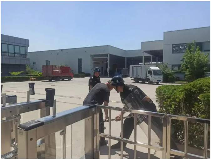 2025年6月17日防暴恐襲擊演練。模擬不明身份人員強行闖入廠區(qū)并意圖實施破壞。項目秩序維護隊員第一時間發(fā)現(xiàn)異常并拉響警報。應(yīng)急防暴小組攜帶防暴盾牌、鋼叉、警棍等裝備迅速趕赴現(xiàn)場,通過戰(zhàn)術(shù)配合與喊話震懾,成功將“暴徒”制服并帶離。演練重點檢驗了秩序維護人員的警惕性、信息通報流程、應(yīng)急處置戰(zhàn)術(shù)及與相關(guān)部門的聯(lián)動機制,有效提升了廠區(qū)反恐防暴的實戰(zhàn)水平。