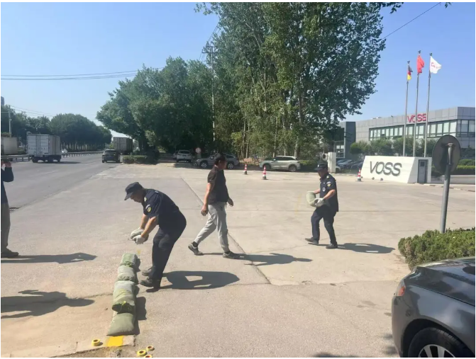 2025年6月16日防汛搶險演練。模擬遭遇強降雨,廠區(qū)低洼區(qū)域出現(xiàn)積水險情。連心物業(yè)駐福士汽車項目秩序維護應(yīng)急分隊聞令而動,迅速集結(jié),按照預(yù)案分工協(xié)作。立即向上級領(lǐng)導(dǎo)匯報。同時快速堆砌防洪沙袋,有效阻截水流倒灌。整個演練過程緊張有序,反應(yīng)迅速,充分展現(xiàn)秩序維護隊伍在極端天氣下的快速響應(yīng)與高效處置能力。