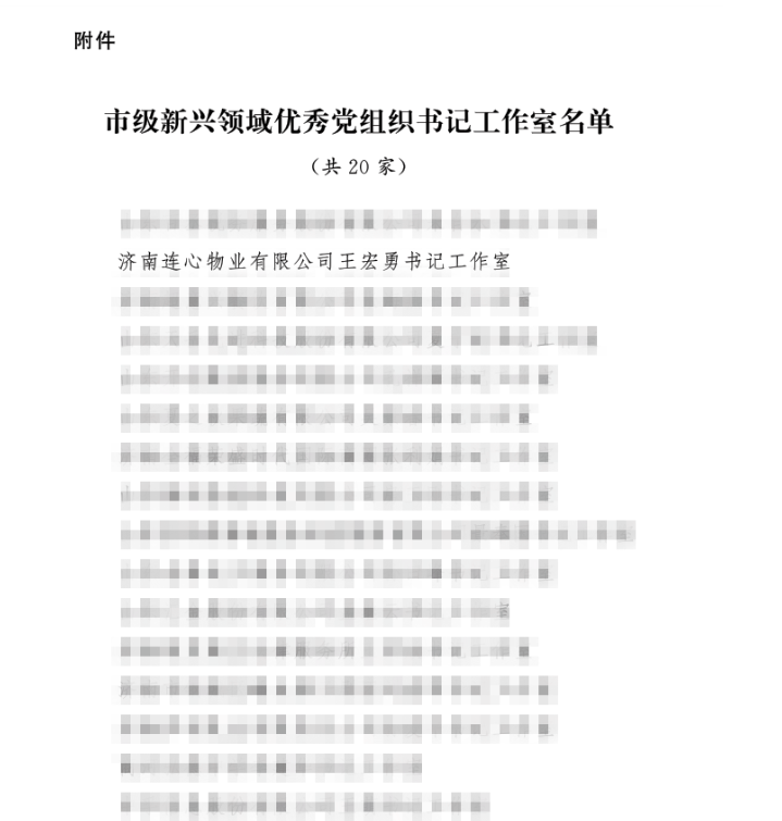 近日,濟(jì)南連心物業(yè)有限公司王宏勇書記工作室被中共濟(jì)南市委非公有制經(jīng)濟(jì)組織和社會(huì)組織工作委員會(huì)授予“市級(jí)新興領(lǐng)域優(yōu)秀黨組織書記工作室”榮譽(yù)稱號(hào)。