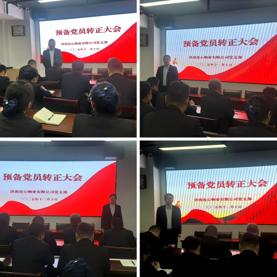 2025年11月10日下午,濟(jì)南連心物業(yè)有限公司黨支部在1701會(huì)議室召開(kāi)第四季度黨員大會(huì),公司全體黨員、入黨積極分子及遞交入黨申請(qǐng)書(shū)人員48人參加本次大會(huì)。學(xué)習(xí)黨的二十屆四中全會(huì)精神、審議預(yù)備黨員轉(zhuǎn)正事宜等兩項(xiàng)議程。