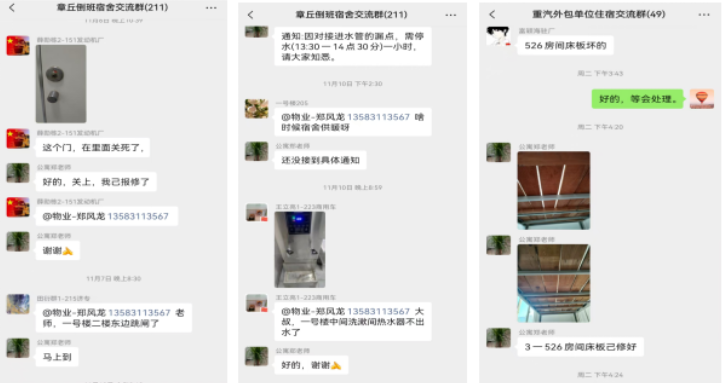在維修方面,項目部確保24小時應(yīng)急響應(yīng)暢通無阻。當住宿職工反映問題,項目部反應(yīng)迅速,無論是照明故障、門鎖問題還是水電應(yīng)急,他們都能在最短時間內(nèi)抵達現(xiàn)場并有效處置,為住宿職工營造一個安全、安心的居住環(huán)境。