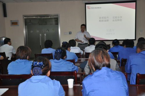 副總經(jīng)理吳建軍結(jié)合項(xiàng)目班組長(zhǎng)近期的實(shí)際情況,就項(xiàng)目倉庫的管理、耗材的使用、班組長(zhǎng)的責(zé)任、班組長(zhǎng)們與各個(gè)層次人員的溝通等進(jìn)行了深入細(xì)致的講解。吳總強(qiáng)調(diào)班組長(zhǎng)是公司的橋梁及紐帶,要時(shí)刻保持正能量,用積極的心態(tài),用人格魅力等不斷的影響我們的基層員工,打造項(xiàng)目的優(yōu)秀團(tuán)隊(duì)。班組長(zhǎng)們有責(zé)任嚴(yán)格管理項(xiàng)目耗材的使用,有責(zé)任為公司、為我們所服務(wù)的托管單位節(jié)約每一滴水、節(jié)約每一度電,時(shí)刻提醒員工“1+1=1”的服務(wù)理念。