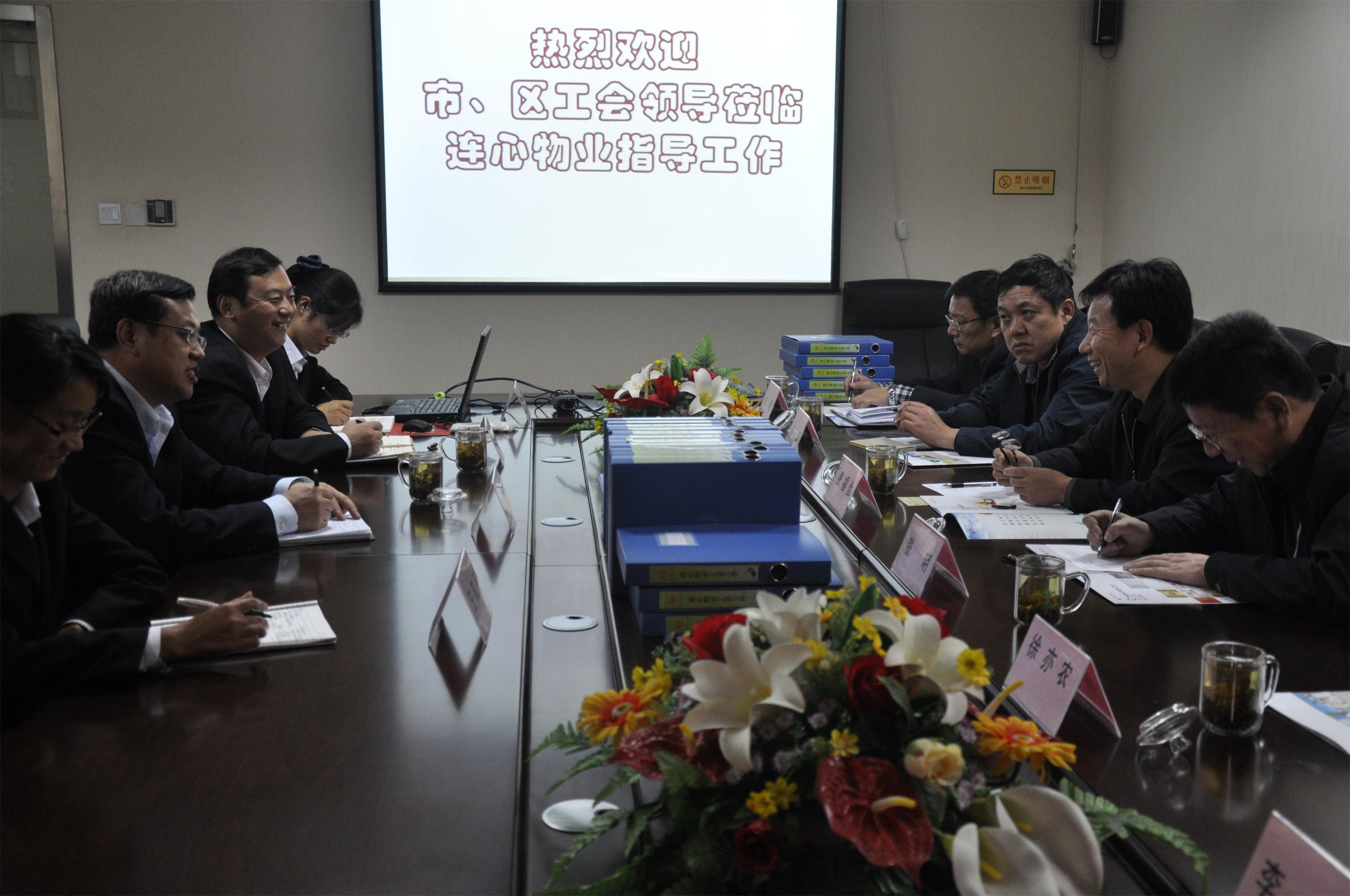 2014年11月6日,濟(jì)南市總工會(huì)常務(wù)副主席張福儉同志、財(cái)務(wù)部長(zhǎng)宋強(qiáng)同志、辦公室主任韓躍同志,在歷下區(qū)總工會(huì)主席張明同志、副主席徐亦農(nóng)同志、副主席李穎同志的陪同下蒞臨公司調(diào)研。濟(jì)南連心物業(yè)有限公司總經(jīng)理王宏勇同志、工會(huì)主席吳建軍同志、工會(huì)副主席向修榮同志、女職工委員王雙平同志接待了與會(huì)領(lǐng)導(dǎo)。