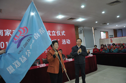 人大常委會(huì)副主任許強(qiáng)同志向濟(jì)南家政公益聯(lián)盟授旗