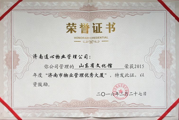 公司服務(wù)的山東省文化館項(xiàng)目榮獲濟(jì)南市物業(yè)管理優(yōu)秀大廈稱號(hào)