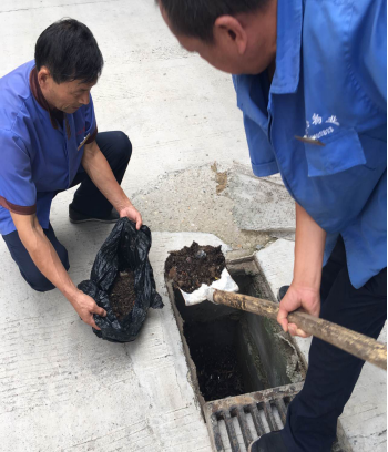 濟南連心物業(yè)有限公司員工疏通雨水井