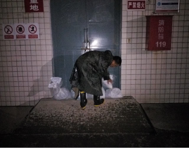 濟南連心物業(yè)有限公司員工整理沙袋位置
