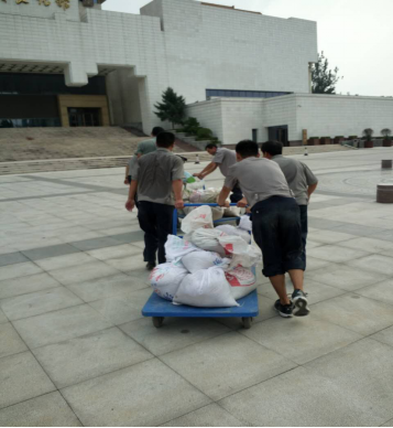 濟南連心物業(yè)有限公司員工搬運黃沙袋