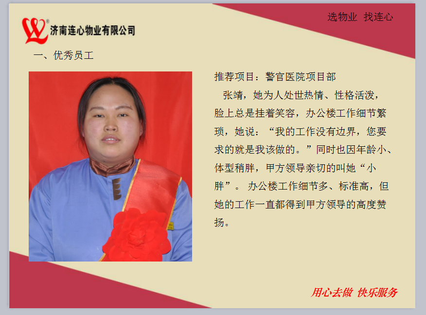 濟(jì)南連心物業(yè)有限公司優(yōu)秀員工代表范寶會(huì)同志發(fā)言