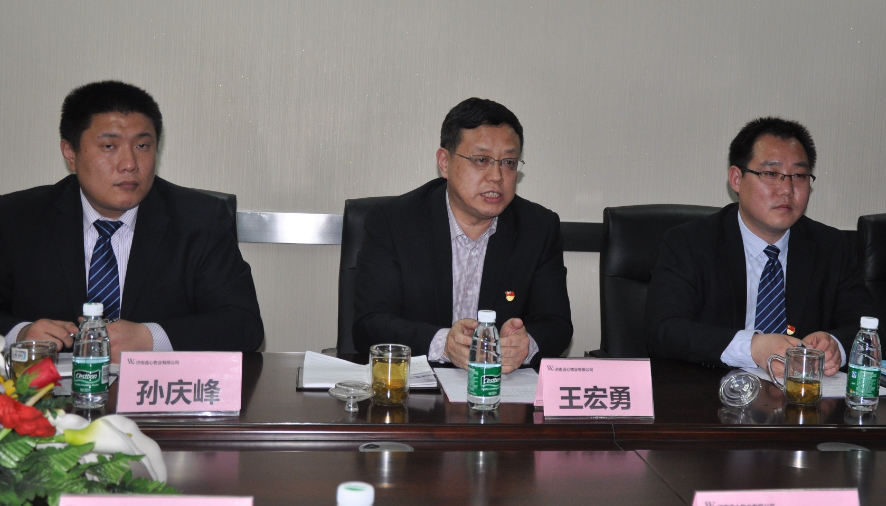 濟南連心物業(yè)有限公司總經(jīng)理王宏勇(中)與各位供應(yīng)商代表進行交流