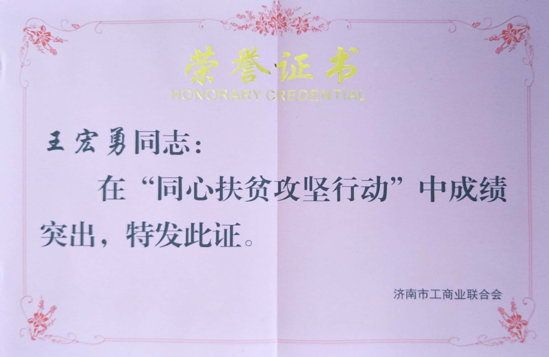 王宏勇榮獲“同心扶貧攻堅行動”先進(jìn)個人
