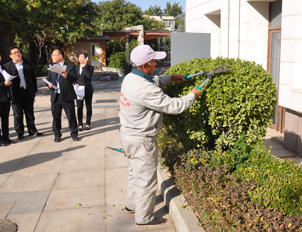 比賽伊始,由山東省文化館項(xiàng)目部客服部人員帶來的會(huì)服展示。她們年輕、熱情、青春、靚麗,是連心物業(yè)的一道亮麗風(fēng)景線,她們專業(yè)的講解知識(shí),優(yōu)雅、熱情的服務(wù)禮儀無不讓在場(chǎng)的選手拍手叫好。知識(shí)問答環(huán)節(jié),她們準(zhǔn)確的回答出裁判人員各種疑難問題,真正的體現(xiàn)出一位會(huì)服人員的業(yè)務(wù)素質(zhì)。隨后各工種在指定比賽場(chǎng)地開始了激烈的角逐。維修組:線路接駁要求、入室維修流程、知識(shí)問答;保潔組:洗地機(jī)使用、玻璃擦拭、知識(shí)問答;綠化組:草坪修剪、灌木整型、理論知識(shí)考試。消防組:滅火器使用展示、消防水袋連接(2盤)展示等。