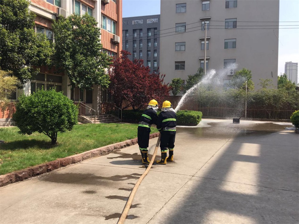 滅火演習(xí)現(xiàn)場(chǎng)安排在辦公樓東邊空曠處。秩序維護(hù)主管楊文國(guó)講解了消防栓和滅火器的使用要點(diǎn)后,首先進(jìn)行水槍滅火演習(xí),滅火員迅速將水帶展開(kāi),伸平,連接水槍頭,包利同負(fù)責(zé)用專(zhuān)用扳手打開(kāi)消防栓接口,將水帶連接到消防栓上,順開(kāi)啟方向打開(kāi)栓閥,兩名滅火員站水帶兩側(cè),抱緊水槍頭,將水流噴向著火點(diǎn)。然后進(jìn)行干粉滅火器滅火演習(xí),大家排成兩排,開(kāi)始滅火操作:檢查滅火器壓力是否正常,噴管是否牢固,先倒置幾下再放正,去除鉛封,拔掉鎖銷(xiāo),手提滅火器,站于距著火源5米左右的上風(fēng)位置,對(duì)準(zhǔn)火源根部,左右掃射至火徹底熄滅。大家面對(duì)火警毫不畏懼,動(dòng)作規(guī)范,每個(gè)人準(zhǔn)確操作,認(rèn)真的完成了 模擬演習(xí)。