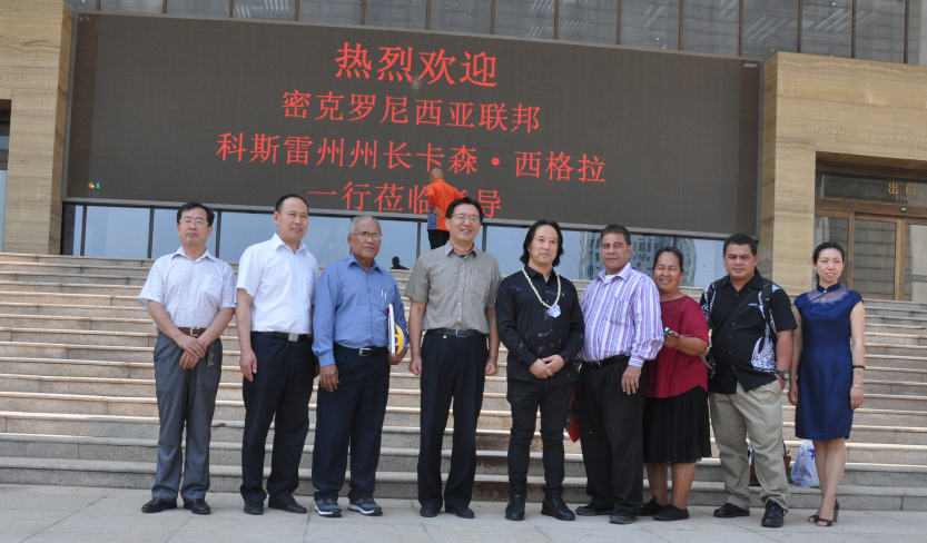 2019年6月14日,濟(jì)南連心物業(yè)有限公司駐山東省文化館項(xiàng)目迎來(lái)了一批遠(yuǎn)道而來(lái)的客人,密克羅尼西亞聯(lián)邦科斯雷州的州長(zhǎng)卡森?西格拉一行6人,在山東省外事辦公室美大處調(diào)研員項(xiàng)琳爽,山東省文化和旅游廳對(duì)外文化交流合作處二級(jí)調(diào)研員王榮國(guó)陪同下來(lái)文化館參觀考察。山東省文化館副館長(zhǎng)徐永生、館辦公室主任李思峰、非遺文化遺產(chǎn)辦公室主任王福成以及社會(huì)文化志愿服務(wù)部主任徐欣參加了此次參觀考察活動(dòng)。