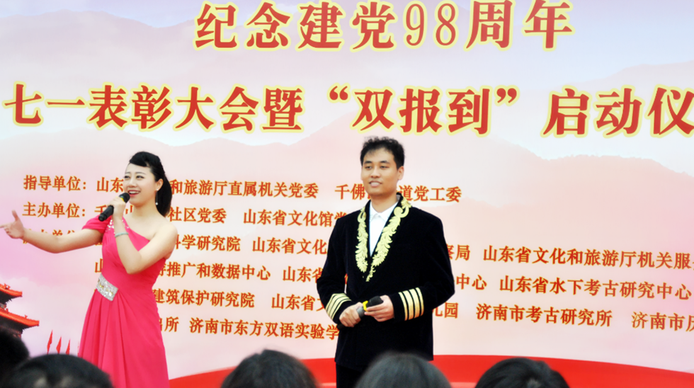 為隆重紀(jì)念中國(guó)共產(chǎn)黨成立98周年,回顧黨的光輝歷程,謳歌黨的豐功偉績(jī),展示黨十八大以來(lái)社區(qū)基層黨組織和廣大黨員充分發(fā)揮戰(zhàn)斗堡壘作用和先鋒模范作用,以及在各條戰(zhàn)線,各個(gè)領(lǐng)域,各項(xiàng)工作中取得的豐碩成果,積極營(yíng)造積極健康向上,追趕超越的良好社會(huì)氛圍。2019年6月27日上午9:30,由山東省文化和旅游廳、千佛山黨工委指導(dǎo),山東省文化館、千佛山東路社區(qū)黨委主辦,十五家社區(qū)共建單位協(xié)辦的“不忘初心 牢記使命七一表彰大會(huì)暨‘雙報(bào)到’啟動(dòng)儀式在山東省文化館隆重舉行,濟(jì)南連心物業(yè)有限公司駐山東省文化館項(xiàng)目部負(fù)責(zé)此次活動(dòng)的全面后勤保障工作。