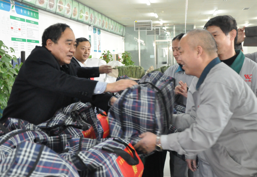 此次慰問活動由中共濟南市委農(nóng)民工工作委員會主辦、濟南市公共就業(yè)服務(wù)中心〔外來務(wù)工人員(農(nóng)民工)綜合服務(wù)中心〕承辦。丁局長一行送來的不僅是濟南市委、市政府對濟南連心物業(yè)有限公司所有員工的關(guān)心與關(guān)愛,更讓辛勤工作在一線崗位上的連心員工感受到了來自上級領(lǐng)導(dǎo)送來的溫暖與新春祝福。丁局長重點強調(diào)農(nóng)民工兄弟姐妹在日常工作中的安全問題,以及對我們平時工作開展的肯定,并叮囑大家注意防寒保暖、注意保護好身體。