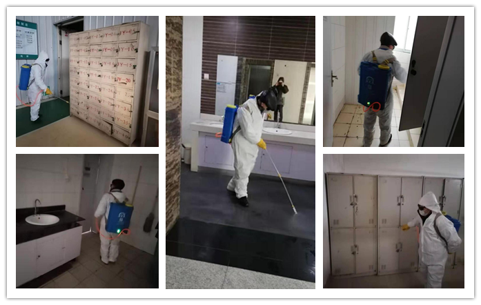 設(shè)備公司項(xiàng)目員工對(duì)各車間里的衛(wèi)生間及更衣室進(jìn)行消殺