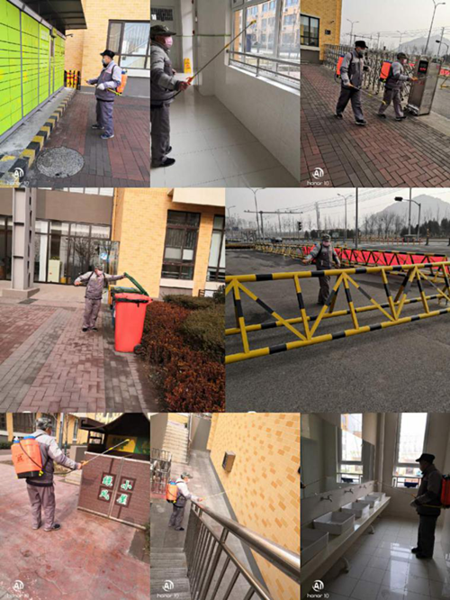 2020年春節(jié),新型冠狀病毒入侵以來,濟(jì)南連心物業(yè)駐濟(jì)南外國學(xué)校項(xiàng)目員工在項(xiàng)目經(jīng)理戴永成的安排部署下,每天堅(jiān)守的在自己的崗位上,進(jìn)行各項(xiàng)疫情防控消毒工作。作為連心物業(yè)人的使命就是為學(xué)校師生提供一個(gè)安全、清潔、文明的工作、學(xué)習(xí)、生活環(huán)境,面對(duì)肆虐的疫情,沖鋒在前是我們作為物業(yè)人的責(zé)任?!耙咔橹委熞痪€在醫(yī)院,疫情防控一線在物業(yè)”,在這場(chǎng)突如其來的戰(zhàn)役中,做好防疫消毒工作,讓廣大師生有一個(gè)安全、放心的學(xué)習(xí)、生活、工作環(huán)境,是我們連心物業(yè)每一個(gè)員工應(yīng)盡的義務(wù)和責(zé)任。