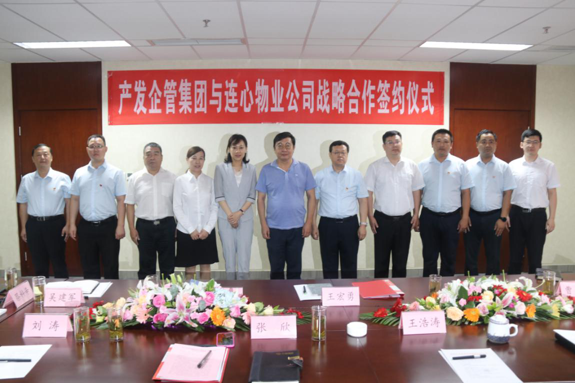2020年8月11日上午,濟(jì)南產(chǎn)發(fā)企管集團(tuán)有限公司與濟(jì)南連心物業(yè)有限公司達(dá)成戰(zhàn)略協(xié)議,在濟(jì)南產(chǎn)業(yè)發(fā)展集團(tuán)7樓會議室正式簽約,共同出資成立濟(jì)南產(chǎn)發(fā)連心物業(yè)管理有限公司。濟(jì)南產(chǎn)發(fā)集團(tuán)黨委委員、副總經(jīng)理,濟(jì)南產(chǎn)發(fā)企管集團(tuán)黨委書記王浩濤蒞臨簽約儀式,產(chǎn)發(fā)企管集團(tuán)董事長張欣、副總經(jīng)理朱風(fēng)亮;濟(jì)南連心物業(yè)黨支部書記、董事長王宏勇,總經(jīng)理戚圣輝帶領(lǐng)各自班子成員出席了此次戰(zhàn)略合作簽約儀式。