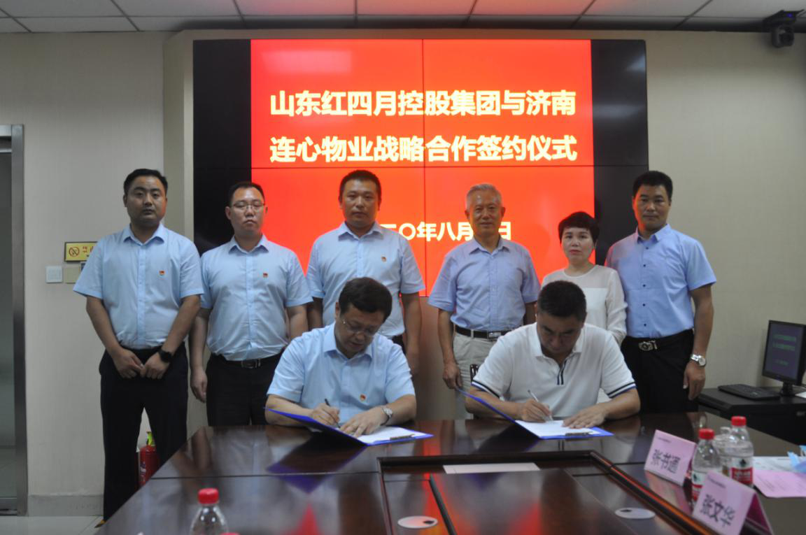 2020年8月9日上午,山東紅四月控股集團與濟南連心物業(yè)有限公司達成戰(zhàn)略合作協(xié)議,在連心物業(yè)公司2308會議室正式簽署合作協(xié)議,共同出資成立濟南捷瑞連心物業(yè)服務(wù)有限公司。山東紅四月控股集團董事長段秀峰、黨支部書記段樹森;濟南連心物業(yè)有限公司黨支部書記、董事長王宏勇,總經(jīng)理戚圣輝分別帶領(lǐng)各自班子成員共同出席了簽約儀式。