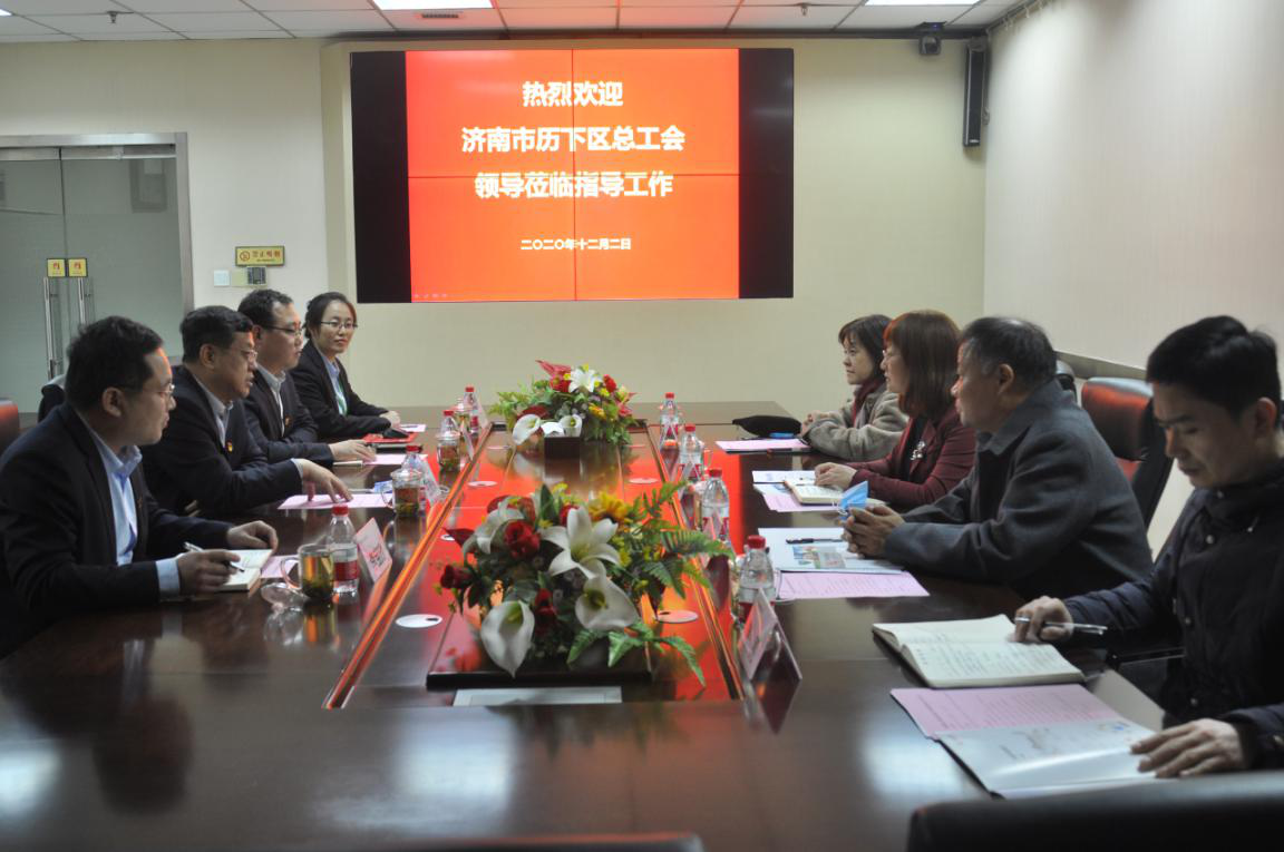 2020年12月2日下午,歷下區(qū)總工會黨組書記、常務(wù)副主席李健,二級調(diào)研員高緒俊、辦公室負(fù)責(zé)人于文莉、生產(chǎn)保障部負(fù)責(zé)人趙亮等蒞臨連心物業(yè)公司調(diào)研指導(dǎo)工會工作。公司黨支部書記、董事長王宏勇,黨支部副書記、總經(jīng)理孟令乾,工會主席李寶建、副主席劉亞楠等參加工作調(diào)研匯報。