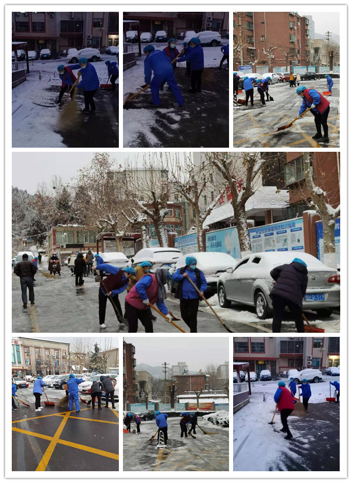 雨雪交加的天氣并不能打消物業(yè)人工作的熱情,他們揮舞著鐵鍬、掃帚,成為了一道亮麗的風(fēng)景線。大家團(tuán)結(jié)協(xié)作,很快各項(xiàng)目上就恢復(fù)了正常的通行,為業(yè)主的正常工作和生活帶來(lái)了便利。