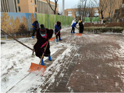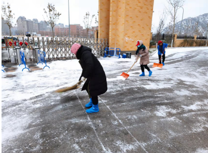 首先與學(xué)校溝通,將清雪工具提前申領(lǐng),并將存放點(diǎn)告知員工,其次按照師生出行主要路線,劃分清雪責(zé)任區(qū)域,明確責(zé)任區(qū)內(nèi)清雪人員。