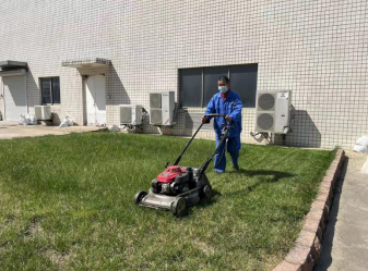 項(xiàng)目保環(huán)境工作人員每天認(rèn)真完成環(huán)境清潔、綠化養(yǎng)護(hù)工作任務(wù),認(rèn)真執(zhí)行每日徹底消毒消殺工作,協(xié)助餐廳洗涮;項(xiàng)目綠化工作崗,為了防止廠區(qū)草坪生長(zhǎng)導(dǎo)致開花結(jié)子,繼續(xù)堅(jiān)守工作崗位,保證每天修剪進(jìn)度不受疫情影響。