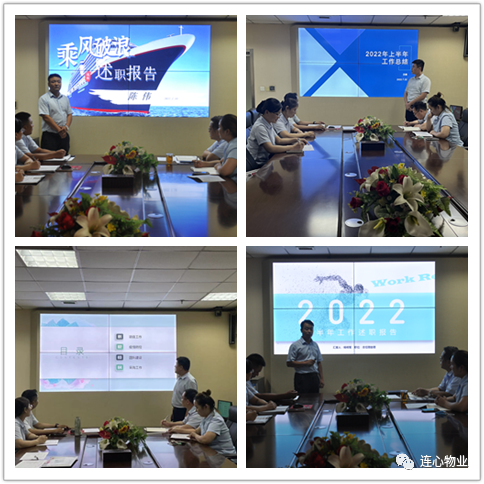 2022年7月18日起,濟南連心物業(yè)有限公司利用為期一周的時間進行了公司上半年工作述職。述職仍采用分層級形式進行,副董事長向董事長述職,總經(jīng)理、副總經(jīng)理、總經(jīng)理助理向董事長、副董事長述職,東西片區(qū)項目經(jīng)理分別向總經(jīng)理及東西片區(qū)分管副總經(jīng)理述職,同時,辦公室主任、財務經(jīng)理、人事經(jīng)理分別參與述職活動。
