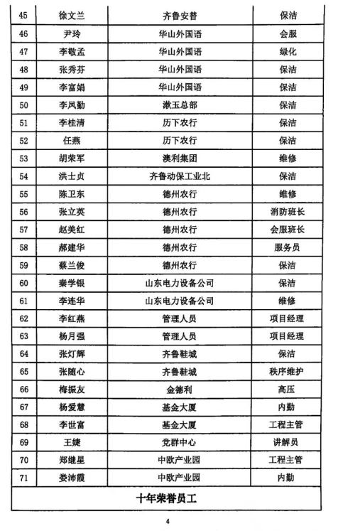 為鼓勵(lì)員工更好的工作,不斷提升員工業(yè)務(wù)技能,推動(dòng)我司物業(yè)服務(wù)高質(zhì)量發(fā)展,濟(jì)南連心物業(yè)有限公司工會(huì)根據(jù)(2022)005號(hào) 關(guān)于開展2022年度先優(yōu)表彰活動(dòng)的通知并依據(jù)《優(yōu)秀員工評(píng)選標(biāo)準(zhǔn)》,各項(xiàng)目評(píng)選出優(yōu)秀共產(chǎn)黨員4名、優(yōu)秀員工71名,十年榮譽(yù)員工27名,本次共計(jì)102名員工被表彰。