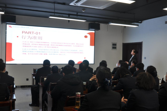 新年伊始,濟(jì)南連心物業(yè)有限公司于2023年1月27日在公司1701會議室舉行開工前首次集中培訓(xùn)。公司黨支部書記、董事長王宏勇、副董事長兼產(chǎn)發(fā)連心物業(yè)總經(jīng)理戚圣輝,公司黨支部副書記、總經(jīng)理孟令乾、副總經(jīng)理曹立、工會主席李寶建、總經(jīng)理助理李義及公司二級主管以上46名管理人員一同參加此次集中培訓(xùn)學(xué)習(xí)。
