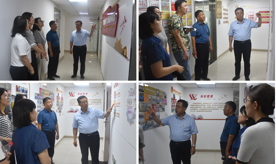 濟(jì)南連心物業(yè)有限公司黨支部書記、董事長王宏勇陪同濟(jì)南市物業(yè)管理行業(yè)協(xié)會(huì)領(lǐng)導(dǎo)參觀了公司總部“黨建引領(lǐng)、連心同行”為主題的黨建文化墻、黨建活動(dòng)室、連心職業(yè)培訓(xùn)學(xué)校等,并對(duì)連心黨建文化墻的黨建引領(lǐng) 連心同行、發(fā)展歷程、企業(yè)文化、企業(yè)榮譽(yù)、三必談五必訪、三會(huì)一課、統(tǒng)戰(zhàn)同心、雙培養(yǎng)雙帶動(dòng)等十八個(gè)宣傳小版塊進(jìn)行了重點(diǎn)講解。隨后在公司會(huì)務(wù)中心進(jìn)行座談交流。