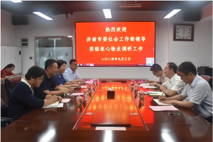 2024年9月3日下午,濟南市委社會工作部部長、“兩新”工委書記徐法賢帶隊到濟南連心物業(yè)有限公司黨支部調研“兩企三新”黨建工作,并專題研究物業(yè)行業(yè)如何打通快遞員、外賣小哥配送“最后一百米”。