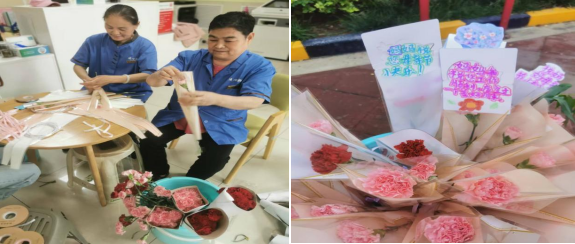 活動前,齊魯軟件園社區(qū)工作人員與連心物業(yè)精心策劃,提前準(zhǔn)備了清香淡雅的康乃馨和五彩繽紛的祝????;顒蝇F(xiàn)場,博士倫項目志愿者熱情地引導(dǎo)小朋友們親手在祝??ㄉ蠈懴聦寢尩膼叟c感恩。隨后,社區(qū)工作人員和連心物業(yè)的志愿者們將一束束精心準(zhǔn)備的康乃馨送到每一位到場母親的手中,并送上節(jié)日的誠摯祝福。母親們臉上洋溢著幸福的笑容,紛紛感慨:“這樣的活動很有意義,讓我們感受到了社區(qū)和物業(yè)的溫暖。”