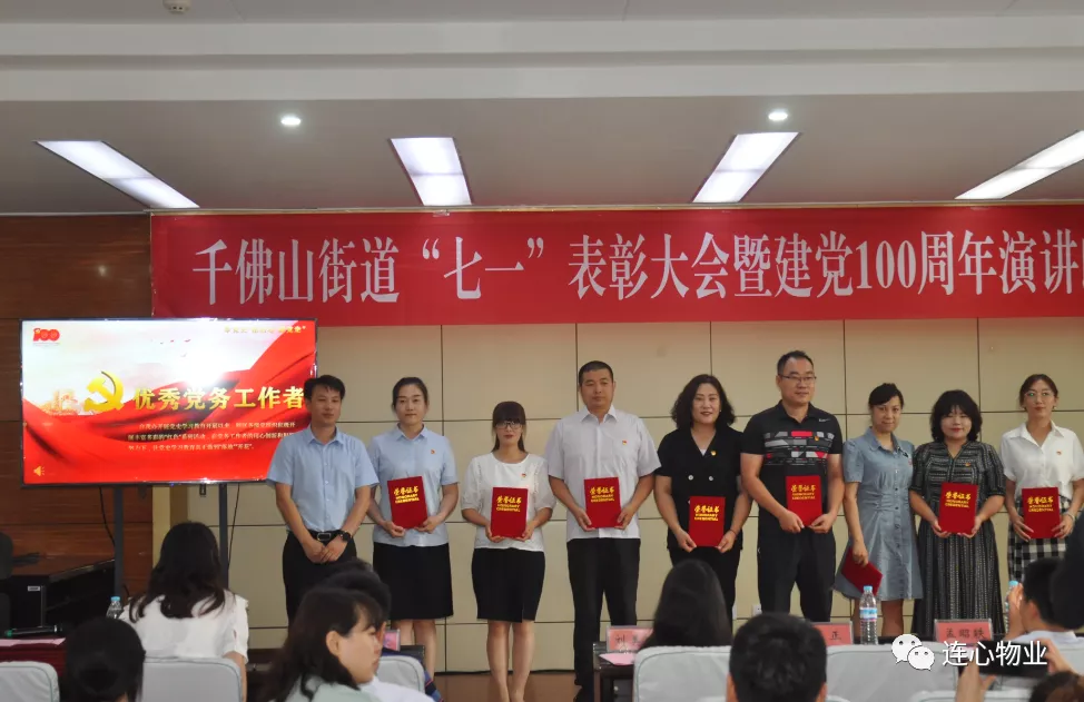 2021年7月9日,千佛山街道舉行“七一”表彰大會暨建黨100周年演講朗誦比賽。濟南連心物業(yè)有限公司黨支部孫耀先榮獲“優(yōu)秀黨務工作者”榮譽稱號、卜小溪榮獲演講朗誦比賽二等獎優(yōu)異成績。